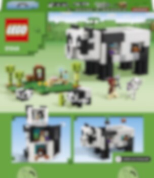 LEGO® Minecraft® Pandaparadiset (21245) är den ultimata leksaken för Minecraft spelare som älskar pandor. Denna jättestora panda, som även är ett möblerat hus, kommer garanterat att glädja alla spelare från 8 år. Ett hus som ser ut och rör sig som en panda Det byggbara, 3 våningar höga, pandaformade huset har en baksida som kan öppnas så att barn kan komma åt de möblerade rummen inuti. Den ledade konstruktionen, med ett ledat huvud, gör att pandahuset kan ställas upprätt, på alla fyra eller sittande. Rummens interiörer kan byggas om så att de passar modellens placering. Med karaktärer som djungelutforskare, panda, pandaunge och ett fientligt skelett som barn kan strida mot. Utanför huvudbyggnaden finns en bambudjungel där spelare kan roa sig med en favoritaktivitet från Minecraft - mata pandorna med tårta. Ännu mer digitalt skoj finns i appen LEGO Builder, med intuitiva verktyg för att zooma och rotera som låter barn visualisera sin modell medan de bygger.