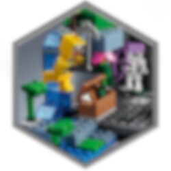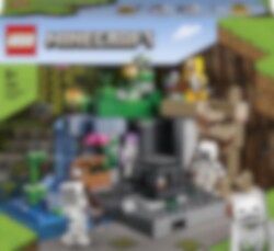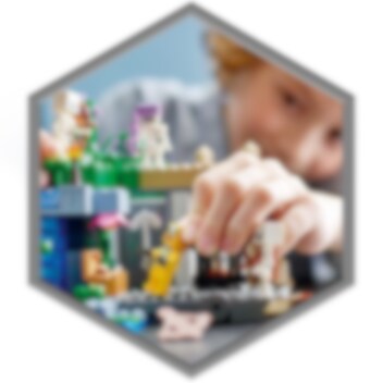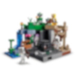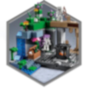 LEGO® Minecraft Skelettgrottan (21189) är en actionspäckad leksak för Minecraft spelare från 8 år. Klassiska Minecraft äventyr med LEGO kreativitet I detta mångsidiga lekset ställs en grottutforskare mot fientliga skelett i ett multilandskap som består av en droppstensgrotta med stalagmiter och stalaktiter, en frodig grotta med buskar, klätterväxter, vatten, lera och facklor, och en skelettens fängelsehåla, med en snurrande skelettskapare. Med handgripliga funktioner som stenar som kraschar ner på fientliga mobs när du trycker på en stalagmit och en roterande vägg som avslöjar ett tredje skelett. Setet innehåller vapen som ett armborst och en hacka, och det finns också en kista med en skiva, bröd och ett ben. Här finns allt en Minecraft spelare behöver för att njuta av oändliga kreativa äventyr!
