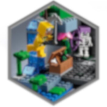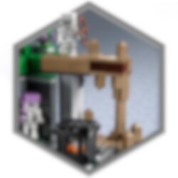 Använd din hacka för att utforska stalagmiter och stalaktiter i droppstensgrottan. Men var försiktig - det finns 2 skelett i fängelsehålan nedanför! Tryck på en stalagmit för att få stenar att falla ner på fientliga mobs. Klättra sedan nerför droppbladen i den frodiga grottan för att bekämpa skeletten med ditt armborst. Men se upp - om skaparen snurras dyker ett till skelett upp, med en förtrollad rustning!