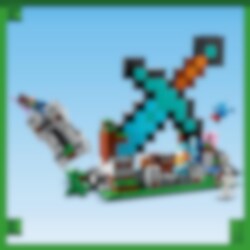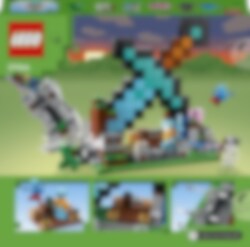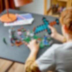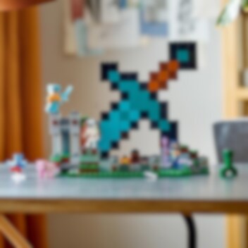 Ge en Minecraft® spelare från 8 år ett ikoniskt diamantsvärd - i enorm skala! I setet LEGO® Minecraft Svärdsutposten (21244) används det värdefulla vapnet som förebild för en supercool bas, där barn kan bygga en plats för att koppla av och delta i explosiva strider. Lek- och uppvisningsmodell av ett diamantsvärd Barn bygger en gigantisk diamantsvärdsbas i en bergssida och försvarar den mot attacker från fientliga mobs. I basen finns ett bord, en kaka och en jukebox där de kan "spela" en skiva. Utanför står en vaktpostsoldat och en väktarkrigare på vakt. På basens framsida finns mer eldkraft i form av 2 kanoner. Setet innehåller fientliga mobs i form av en Creeper och ett skelett och vänliga mobs i form av en gris och en allay med folievingar. En spak längst ner i tornet utlöser en explosion får en del av byggnaden att rasa. Ännu mer digitalt skoj finns i appen LEGO Builder, med intuitiva verktyg för att zooma och rotera som låter barn visualisera sin modell medan de bygger.
