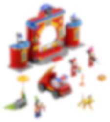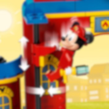 Disneys Musse Pigg och Mimmi Pigg är modiga brandmän. Besök brandstationen och kolla in den coola brandbilen, glid nerför stången och ta dig upp i tornet för att se dig omkring. Är det där rök? Åh nej, Långbens grill brinner! Hoppa in i brandbilen och skynda till eldsvådan, och ställ sedan stegen i rätt position så att du kan bekämpa branden från ovan. Rädda ditt ben, Pluto! Man blir hungrig av att bekämpa bränder, dags för en varmkorv!