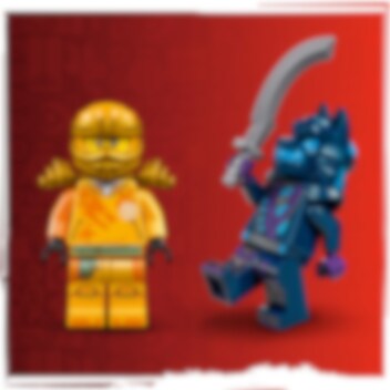 Gör dig redo för actionfyllda ninjastrider när Drak-Arin tar sig an en krigare i vargmask! Sätt Arin på drakens rygg, slå ner drakens svans och se hur Arin får drakkraft och kastar sig in i striden! Kan han besegra den onda vargkrigaren som svingar sitt farliga svärd? Kommer han att kunna rädda den nya NINJAGO® världen? Det är helt upp till dig!