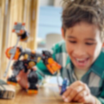 Barn från 7 år kan återskapa berättelser från säsong 2 av tv-serien NINJAGO® Drakarna vaknar med äventyrsleksaken Coles elementjordrobot (71806). Den coola roboten har rörliga armar och ben som kan lutas och vridas till dramatiska stridspositioner, Coles tunga rustning, en stor hammare och en cockpit med plats för en minifigur. Denna helt nya anpassningsbara robot låter barn bygga sin egen robot! De avtagbara benen, armarna och överkroppen kan kombineras med delar från 2 andra robotar: Soras elementteknikrobot (71807) och Kais elementeldrobot (71808) (säljs separat). Barn kan ha roligt i timmar när de blandar och kombinerar delarna för att skapa unika actionfigurer. Ninjaleksaken har 2 minifigurer – Cole med ett katanasvärd och en krigare i vargmask med ett svärd – så att barn kan iscensätta spännande ninjaaction. Setet kan även byggas med appen LEGO® Builder, som guidar dig och ditt barn genom ett enkelt och intuitivt byggäventyr.