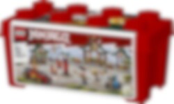 LEGO® NINJAGO® Kreativ ninjaklosslåda (71787) har allt som ninjafans från 5 år behöver för att träna med sina hjältar och ha roligt med oändliga actionlekar. Byggsetet innehåller 3 byggnader, en hinderbana med 3 interaktiva stationer, ett vapenförråd med massor av vapen, en ninjabil och en ninjamotorcykel. 530 delar som inspirerar till kreativt byggande Leksetet innehåller även 6 minifigurer: Nya, Kai, Master Wu, manliga och kvinnliga lärlingar och benjägaren, alla med vapen. För första gången någonsin lanseras ett NINJAGO set i en klosslåda för att inspirera barn att använda sin fantasi och skapa egna byggnader och fordon. Lådan är dessutom en fantastisk förvaringslösning och gör det snabbt och enkelt att städa upp. En rolig digital upplevelse för LEGO byggare Låt appen LEGO Builder guida dig och ditt barn på ett enkelt och intuitivt byggäventyr, där ni kan zooma in och rotera modeller i 3D, spara set och hålla reda på era framsteg.