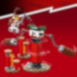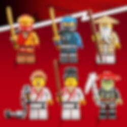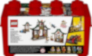 Träna upp dina färdigheter med Nya, Kai och Master Wu i ninjornas dojo. Utveckla din styrka och smidighet på hinderbanan i träningsområdet, men var på din vakt eftersom benjägaren tänker bryta sig in! Gör dig redo att susa iväg i ninjabilen eller på motorcykeln för att konfrontera honom. Du kan även använda klosslådans 530 delar för att bygga de nya ninjamodellerna och byggena som föreslås i instruktionerna.