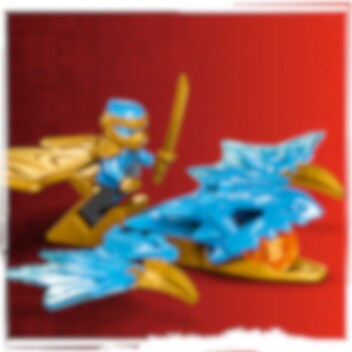 Susa upp i luften för djärva strider när Drak-Nya och hennes blå drake tar sig an en klokrigare i vargmask! Sätt Nya på drakens rygg, tryck ner dess gyllene svans och se hur Nya får drakkraft och kastar sig rakt in i striden! Kan hon slå ner vargkrigaren och undvika hans vassa klor för att rädda den nya NINJAGO® världen?