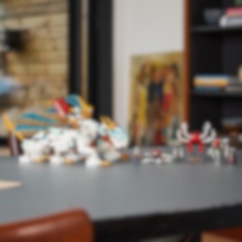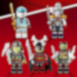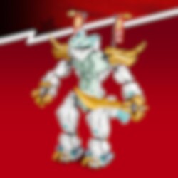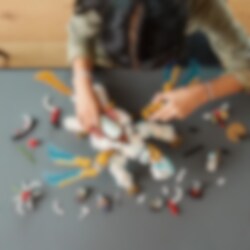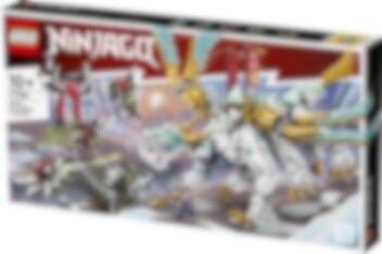 Susa ner från skyn med Zane och hans grymma isdrake och ta dig an 3 onda gröna benkrigare. Attackera med drakens vassa isklor, horn, svans och isande andedräkt! När du har vunnit striden kan du bygga om modellen till en imponerande drakkrigare på 2 ben som svingar en stor gyllene klinga. Välj mellan 2 fantastiska stridsklara varelser för att skydda NINJAGO® City från attack!