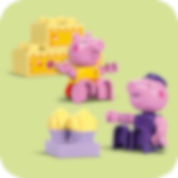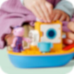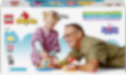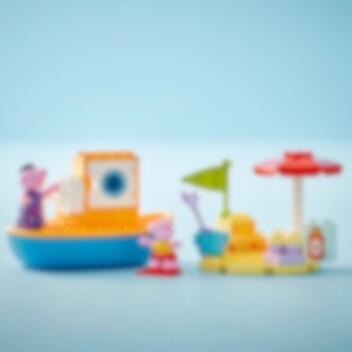 Kliv ombord på leksaken LEGO® DUPLO® Greta Gris – Båttur (10432) för timmar av roligt lärande för förskolebarn. Flickor och pojkar från 2 år följer med Morfar Gris och Greta Gris när de åker till stranden med hans båt. Denna leksak att bygga och bygga om har massor av kreativa tillbehör som ger små barn inspiration till berättelser. De hjälper Greta att smörja in sig med solkräm innan de letar efter snäckor och finslipar sina staplingsfärdigheter genom att bygga ett sandslott. Om solen är för varm kan Greta sätta sig under parasollet eller ta ett dopp, och små barn övar sin öga-hand-koordination och finmotorik när de hjälper henne att ta på sig simfötterna. Och små barn kan också svalka sig om de vill – detta Greta Gris båtset flyter påriktigt, så de får timmar av plaskande skoj med denna vattenleksak. LEGO DUPLO Greta Gris leksaker för barn är utformade för att främja förskolebarns lärande och hjälpa små barn att tänka logiskt och kreativt när de skapar berättelsesekvenser och spela r upp scener från tv-serien.