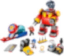 Barn hjälper Sonic att rädda dagen med leksetet LEGO® Sonic the Hedgehog Sonic mot Dr. Eggmans dödsäggsrobot (76993) för barn från 8 år. Sonics ärkefiende Dr. Eggman och hans medhjälpare Cubot har fångat in djur för att driva sina uppfinningar. Barn kan skjuta iväg Sonics fartklot för att besegra Dr. Eggman innan de undersöker forskningsbasen för att samla information inför nästa uppdrag. Fartfyllda actionlekar Barn kan använda fartklotet och avfyraren för att ta sig uppför rampen och förbi taggarna. Dödsäggsroboten har en avtagbar kapsel med djuren som Dr. Eggman använder för att driva roboten. De kan knuffas ut och räddas när Sonic träffar Dr. Eggman med fartklotet. Många sätt att leka Fartfylld action möter kreativ lek i LEGO Sonic the Hedgehog™ lekset. Fans av den blå igelkotten kommer att älska att skapa scener inspirerade av sina bästa äventyr med Sonic. När det är dags för ett lugnare tempo kan barn njuta av fantasifulla lekar där de tar hand om Sonics djurvänner.