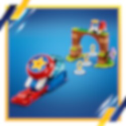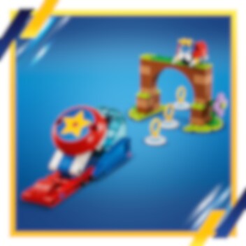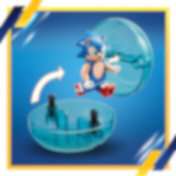 Är du redo att bygga en bana till Sonic? Använd fartklotet för att skicka Sonic genom hindren i hans försök att besegra Moto bug Badnik och rädda Flicky. Använd dina färdigheter för att skjuta iväg Sonic för att samla ringar och ta sig genom portalen och uppför rampen för att nå kaossmaragden. När dagen är räddad kan du leka med figuren av Sonic och chilikorvs- och dj-tillbehören.