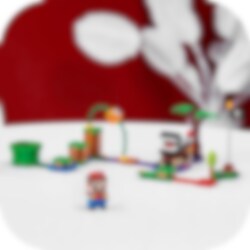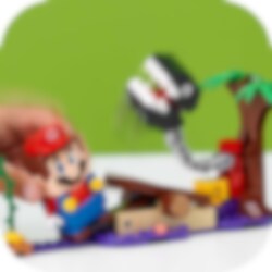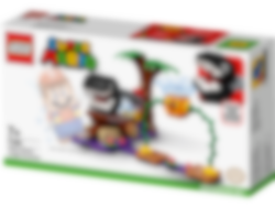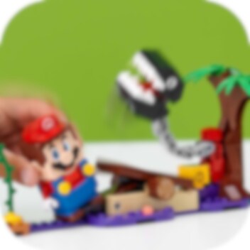 Utöka din LEGO® Super Mario startbana med Chain Chomps spännande utmaning! Gå in i Soda Jungle och var försiktig så att du inte kliver i det giftiga träsket. Hoppa på Bramball med de taggiga benen för att besegra den. Hoppa på plattformen för att slå Chain Chomp ur vägen. När denna farliga, bitande fiende är lös måste du hoppa på myntblocket för att ta din belöning!