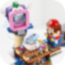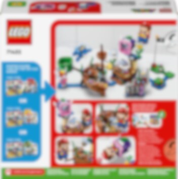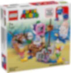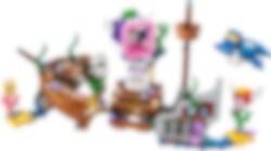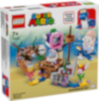 Sök efter skatter i undervattensvärlden! Rid på en Dorrie med LEGO® Mario, LEGO® Luigi eller LEGO® Peach (figurer ingår inte) och utforska skeppsvraket. Åh nej! Skattkistan är låst, så du måste hitta nyckeln. Titta under skeppets mast, men bli inte uppäten av Cheep Chomp! Snurra på plattformen för att öppna snäckan och avslöja ett nyckelblock. Öppna skattkistan och hämta juvelen!