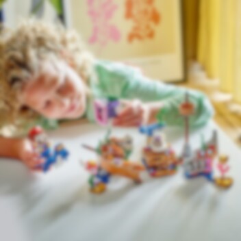 Skapa en spännande LEGO® Super Mario undervattensbana och gå på skattjakt med Dorries sjunkna skeppsvrak – Expansionsset (71432). Rid på en Dorrie med en interaktiv figur av LEGO® Mario, LEGO® Luigi eller LEGO® Peach (figurer ingår inte) och utforska skeppsvraket. Observera: Startbana 71360, 71387 eller 71403 krävs för interaktivt spel. Denna byggleksak för barn från 7 år innehåller 4 klossbyggda LEGO® Super Mario™ figurer – Dorrie, Cheep Cheep, Cheep Chomp och Blooper. Snurra på plattformen för att hitta nyckelblocket som finns gömt i snäckan och öppna skattkistan för att hämta juvelen. ? blocket ger slumpmässiga belöningar, och Cheep Chomp kan tugga på en interaktiv figur med munnen, vilket utlöser roliga digitala reaktioner. Bygginstruktioner till setet finns i appen LEGO Super Mario. Appen erbjuder även ett säkert forum där barn kan dela sina skapelser och få kreativa idéer till olika sätt att bygga och spela.
