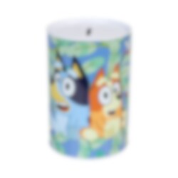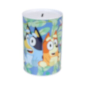 Sparbössa med ett vackert motiv av Bluey och Bingo Perfekt som present till alla Bluey-fans! Observera att sparbössan inte kan öppnas, så pengarna är säkra tills det är dags att tömma den.