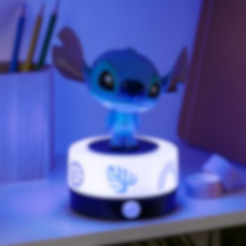 Låt Stitch hålla vakt med både stil och ljud. Denna dekorativa figur föreställer den charmiga karaktären Stitch och fungerar som en Room Guard med inbyggd rörelsesensor. När någon går förbi lyser Stitch upp och spelar ljud, en lekfull kombination av praktisk funktion och inredningsglädje för alla som gillar Lilo & Stitch.