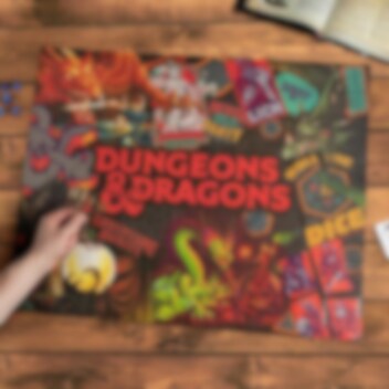 Läckert pussel som har motiv av olika häftiga saker som är relaterade till rollspelet Dungeons & Dragons. Förpackningen innehåller 1000 st. pusselbitar och pusslet har ett mått på 61 x 76 cm.
