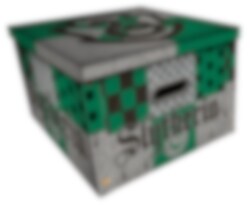 Snygg förvaringslåda av kartong i Slytherins färger och motiv från Harry Potter. En tuff pryl att ge bort som en present till den som älskar Harry Potter. Förvaringslådan är ca 36,7 x 36,7 x 23,8 cm stor när den är hopbyggd.