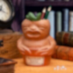 Tuff kruka som föreställer en Mandrake-växt från Harry Potter serien. En rolig sak att använda som pennställ eller varför inte plantera normala växter i denna kruka. Om du ska använda krukan för att plantera i, använd bara inomhusväxter då krukan inte har någon dräneringshål.