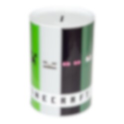 En tuff sparbössa med häftiga motiv från det populära spelet Minecraft. Perfekt som present till alla Minecraft-fans! Observera att sparbössan inte kan öppnas, så pengarna är säkra tills det är dags att tömma den.