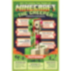 Poster med tufft motiv av en Creeper med tillhörande lärorika fakta om dem från Minecraft.