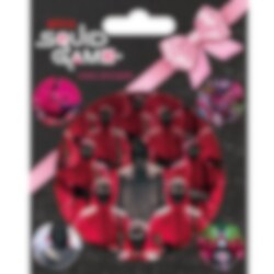 4 av klistermärkena är ca 2 cm i diameter och 1 av dem är ca 7,5 cm i diameter. Detta är en officiellt licensierad Squid Game produkt.