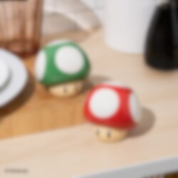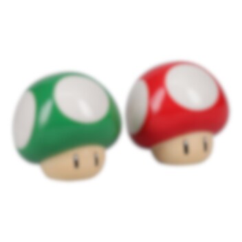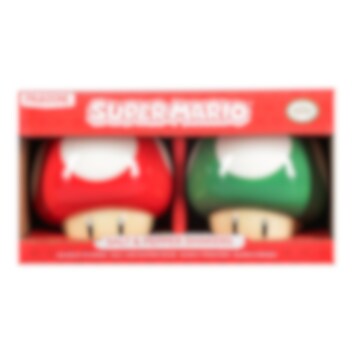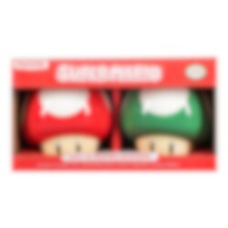 2 st. salt och pepparströare som föreställer de klassiska svamparna från Super Mario Bros: röd svamp för salt och grön svamp för peppar. Lägg till en lekfull touch i ditt kök med dessa unika shakers, perfekta för att förvara salt och peppar på ett roligt och fantasifullt sätt!