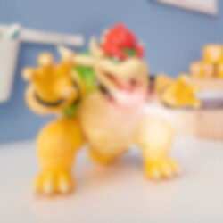 Denna imponerande samlarfigur av Bowser från Super Mario Bros mäter 18 cm i höjd och är ett måste för alla fans. Med 14 artikulerande punkter och en eldandningseffekt, blir denna figur ett spännande tillskott till din samling. Perfekt som present eller för att dekorera ditt rum med.