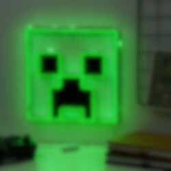 Cool vägglampa i form av en Creeper från Minecraft som lyser i intensivt neongrönt – en perfekt detalj i gamingrummet eller barnrummet!