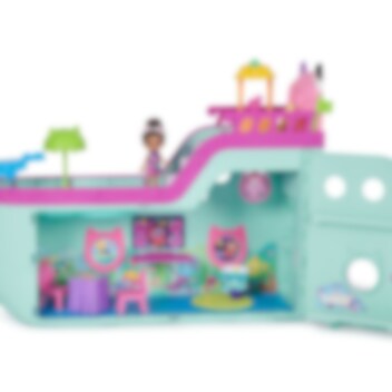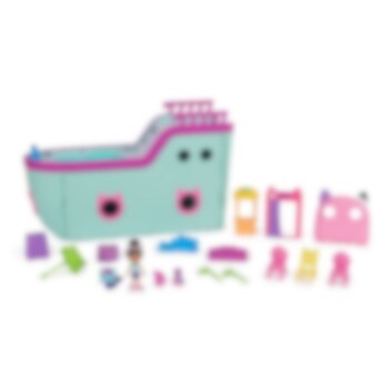 Stig ombord på detta fantastiska "Cat-Tastic Cruise Ship" från Gabby's Dollhouse! Detta färgsprakande skepp kommer med 18 olika delar och erbjuder färggranna och färgskiftande ljus som kommer att förtrolla barnen.