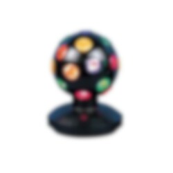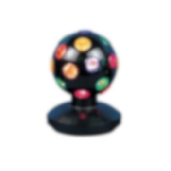Få äkta discokänsla på ditt eget rum. Svart discokula på fot med ljus i många snygga färger. 10 cm i diameter. Adapter medföljer. Från 3 år (kräver inga batterier).