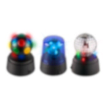 Starta den ultimata festen med det här paketet med diskokulor! Paketet innehåller tre diskokulor, som alla bidrar till festen med olika ljuseffekter. Det ingår en klassisk spegelboll, en diskokula med röda, gröna, gula och blå LED-lampor och en diskokula med blått blinkande LED-ljus. Diskokulorna är perfekta att ge bort som gåva! Varje diskokula kräver 3 x AA-batterier (ingår inte). 12 cm höga.
