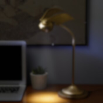 Skapa magisk stämning i rummet med denna stiliga skrivbordslampa som föreställer den ikoniska Golden Snitch från Harry Potter. Lampan är 40 cm hög och har tre olika ljusstyrkor och ljuslägen.