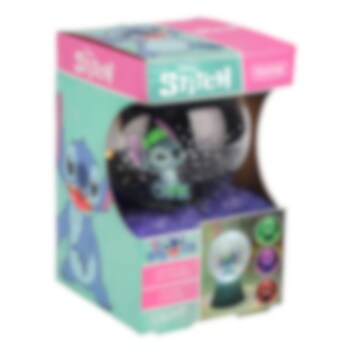 Låt Stitch lysa upp rummet med magi. Denna färgglada glitterboll sprider ett stämningsfullt ljus samtidigt som glitterpartiklar snurrar runt den söta Stitch-figuren inuti. Ljuset växlar mellan flera färger och skapar en rogivande effekt som passar perfekt som nattlampa eller dekorativ inredningsdetalj.