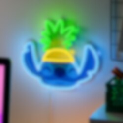 Skapa en färgsprakande vägg med den här lekfulla LED-vägglampan i form av Stitch! Med neonblått, limegrönt och gult ljus lyser den upp rummet på ett sätt som ger både Aloha-vibbar och ett leende på läpparna, perfekt för alla fans av Lilo & Stitch.