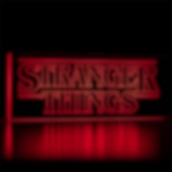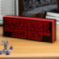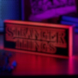 Cool lampa som föreställer Stranger Things logon som skiner i rött.