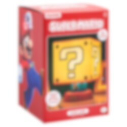 Läcker lampa som föreställer det ikoniska Question Blocket från Nintendos Super Mario franchise. Den ultimata prylen som får vilket rum som helst att se mysigt ut. Lampan har 3 st. ljusinställningar och har även en touch funktion för av- och på och slutar att lysa automatiskt efter 20 minuter. Lampan drivs av antingen en USB-kabel eller 3 st. AA batterier som ej ingår.