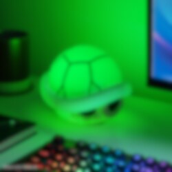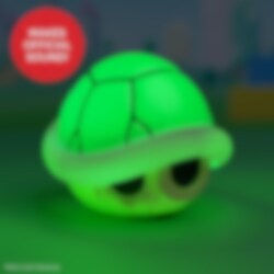 Cool lampa som föreställer ett grönt skal från spelet Mario Kart från franchisen Super Mario Bros. Lampan är ca 12 cm hög och drivs av 2 st. AAA batterier som ej ingår. Tryck på lampan för att höra de ikoniska ljuden.