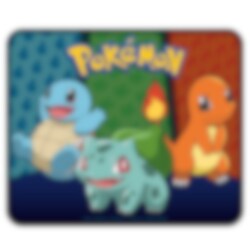 Härlig musmatta av hög kvalité med roligt motiv av Squirtle, Bulbasaur och Charmander från Pokémon.