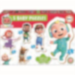 5 pussel i en förpackning som varierar från 3 till 5 bitar (20 bitar sammanlagt) som föreställer de glada karaktärerna från Cocomelon. Bitarna är större, tjockare och lättare att hantera: de stimulerar uppmärksamheten samtidigt som de utvecklar psykomotilitet, nyfikenhet och fantasi. Från 2 år.