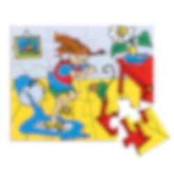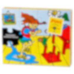 Ett roligt Pippipussel med bild på den tokiga Pippi Långstrump som skurar golvet på sitt eget vis. Detta träpussel har 12 bitar och får plats att pusslas ihop i sin egen låda. Praktiskt på resan. Illustration av Ingrid Vang Nyman. Mått 22x18 cm.