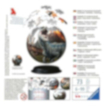 3D pussel med Jurassic World motiv som färdigbyggt har en diameter om ca 13 cm. I förpackningen ingår en bas att ställa din nya pusselboll på. Till detta pussel behövs heller inget lim utan det är bara att starta bygga.