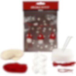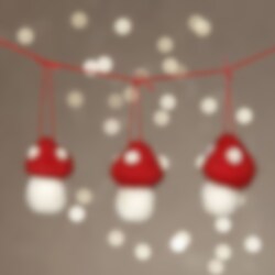 Skapa tre charmiga små svampar i filt som du kan hänga som dekoration i granen eller på väggen till jul. Det här pysselkitet innehåller allt du behöver för att tova ihop söta röda och vita svampar som ger hemmet en härlig, naturlig julkänsla.