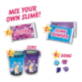 Ett roligt DIY slime kit med enhörningstema som innehåller allt du behöver för att göra eget slime hemma. Det du behöver komplettera är vatten. På baksidan av förpackningen står det enkla instruktioner på hur du går till väga.