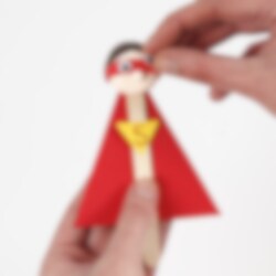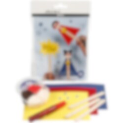 Skapa roliga och coola superhjältar med detta pysselset. Här finns allt som behövs för att skapa 2 glasspinnefigurer och en skylt. Inspiration medföljer. Detta pysselset innehåller: 3 ark kartongpapper, Silk Clay® i 3 färger, glasspinnar, rullögon och glitterlim.