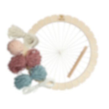 Den runda vävramen är en klassisk och rolig träleksak från Micki. Denna mindre variant är nätt och smidig att ta med på familjens äventyr. Till vävramen ingår det 4 st. olika garner i olika strukturer och färger. Produkten är trädd och klar i förpackning och är lätt att trä på nytt. Ramen är 21 cm i diameter.