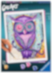 Målarset med motiv av en drömlik uggla som passar utmärkt till den blivande konstnären. En avslappnande hobby till dem som älskar att måla och följa siffror. Tavlan är ca 24 x 30 cm stor när den är färdig.