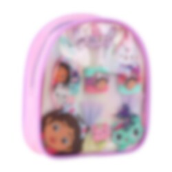 En färgglad och lekfull ryggsäck fylld med roliga accessoarer i Gabby's Dollhouse-tema, perfekt för barn som älskar att pyssla, styla och ta med sina favoritsaker överallt.