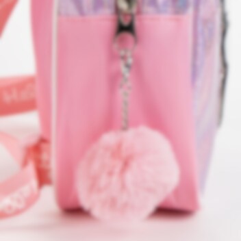 En söt och glittrig ryggsäck med Hello Kitty, perfekt för små äventyrare! Den skimrande framsidan och den rosa fluffbollen som hänger i dragkedjan gör ryggsäcken både lekfull och stilfull. Perfekt till förskolan, utflykten eller som en extra väska på resan.