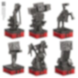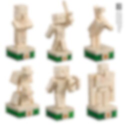 Detta set innehåller 32 spelpjäser, upp till 4 cm höga, med texturer och finish som liknar marmorerad sten, obsidian, rödsten eller smaragd, vilket ger en autentisk Minecraft-känsla till spelet.