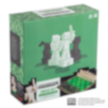 Detta Minecraft Schackspel är en unik och spännande version av det klassiska spelet schack, perfekt för både Minecraft-fans och schackentusiaster. Schackbrädet är 18 x 18 cm och har en träliknande ram runt en spelyta av "gräs" i texturerade gröna nyanser, omgiven av Minecraft-logotyper i en metall-finish.